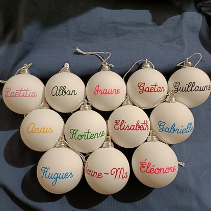 Boule de Noël en verre de 6cm de diamètre personnalisée avec le prénom de votre choix.