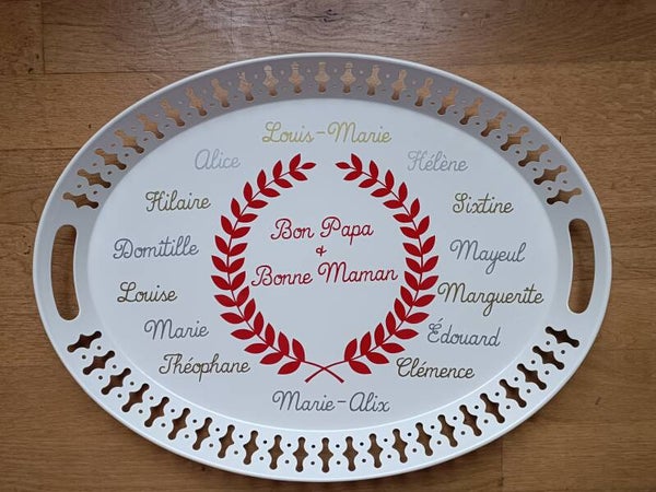 Plateau en acier personnalisé avec des stickers. Idéal comme plateau pour le petit déjeuner ou pour prendre une tasse de thé devant la télévision. Le bord du plateau évite que les choses que vous transportez ne tombent.