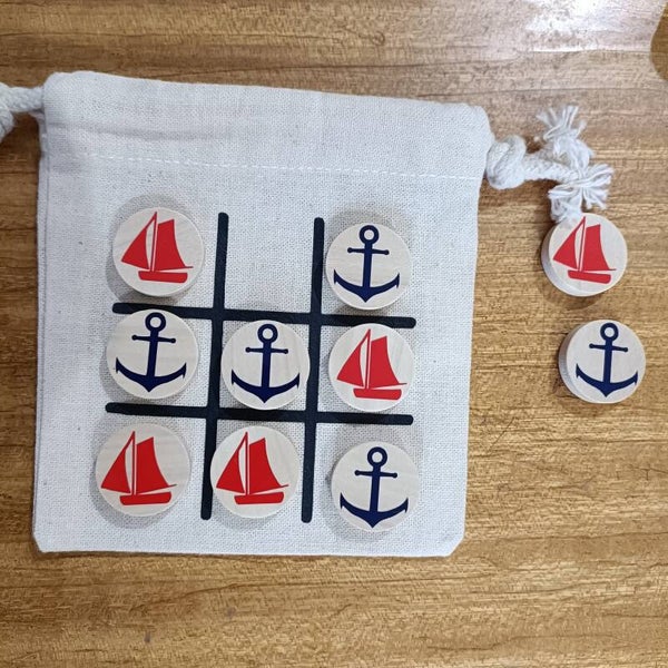 • Description : jeu de morpion en bois présenté dans un petit sac en coton